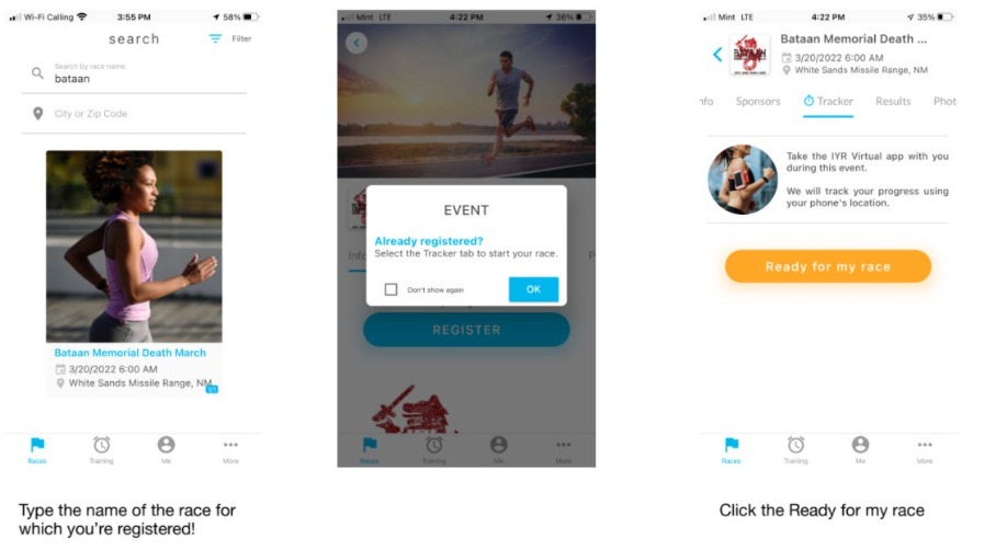 • Select the event that you are registered for and tap the START RACING button. Your virtual race event has begun!